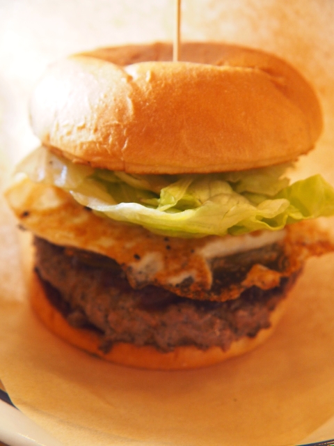 大き目のバンズに、大きくて分厚いパティ、フライドエッグ、ハラペーニョ、そしてレタスを挟んだ状態で提供された。当然ながら、物凄く大きい、食べ応えのあるハンバーガーに(そんな事もあり、串を刺して一つに纏めている)。単に大きいだけでなく、牛肉の旨味を思う存分味わえるパティ、ハラペーニョによりメキシカンテイストになっている等、特徴あるものに仕上がっている。- 旅行時期