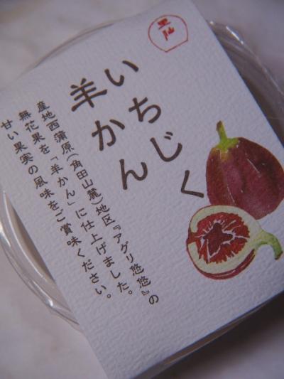 フルーツを磨り潰して型に入れ、冷やし固めたデザートというと、ゼリーを思い浮かべてしまうが、この菓子はれっきとした羊羹。通常小豆を使う所、イチジクを使っているのが最大の特徴。