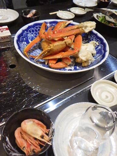 他に、海老、サラダ、カニフライ、刺身、ホタテ焼き、シューマイ、焼き飯、ミニケーキ等が提供された。カニがメインなので、他の料理はシンプル。