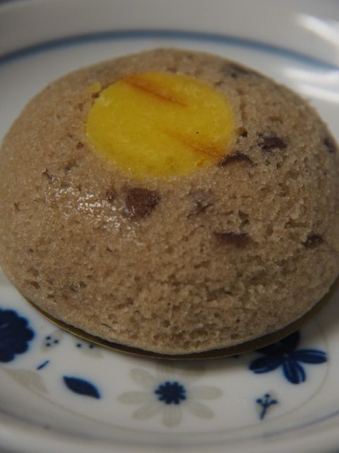 ふんわりしっとりとした小豆風味の生地に、黄色い黄身餡が。