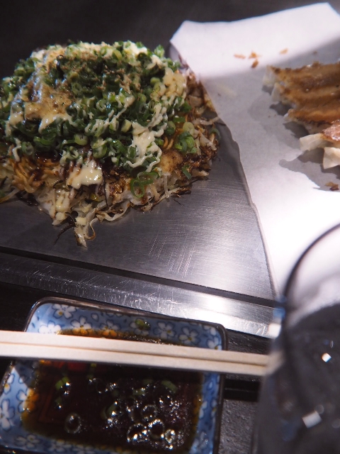 広島風のお好み焼は、豚肉を使うが、府中のは牛脂ミンチを使う。また、広島風はモヤシとキャベツを使うが、府中のはキャベツのみ使う。牛脂により、焼くというより揚げられていて、カリカリに仕上がる。- 旅行時期