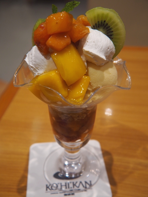 マンゴーを中心としたフルーツパフェで、キウイ・オレンジ・ストロベリーも使っている。