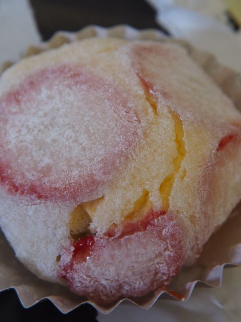 カスタードクリーム入りのケーキ生地と苺を、牛皮で包んでいる。