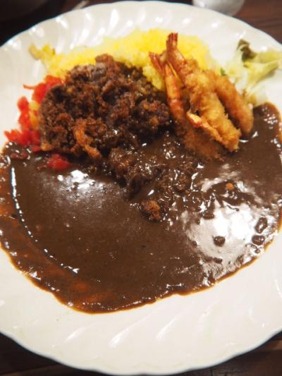 コンビネーションカレー(ビーフカツ・えびフライ)は、当店が提供するカレーの1種。