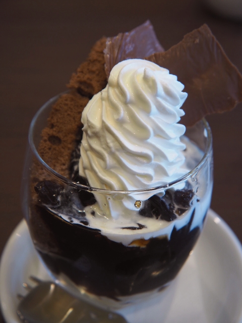 苦味のある自家製コーヒーゼリーと、滑らかなバニラアイスと、しっとりとしたチョコレートケーキと、ふんわりとした生クリームの相性は抜群。