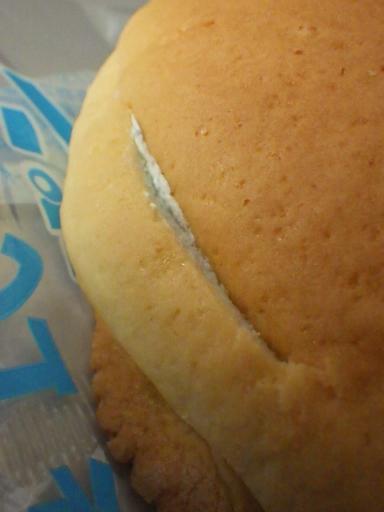 コッペパンというと、細長いのが常識だが、当店のは丸い(逆にメロンパンは細長い)。