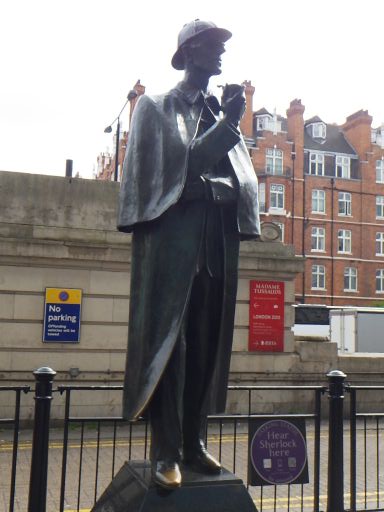 地下鉄のベイカー・ストリート駅の正面入り口にあるシャーロック ホームズ像。