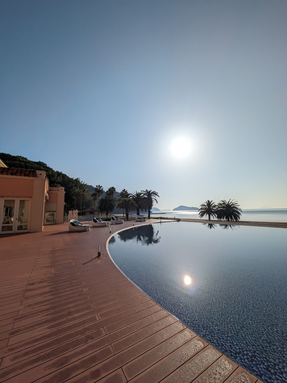 天気も良かったこともあり、時間によって変化するインフィニティラグーンの景色の変化も楽しめました。
