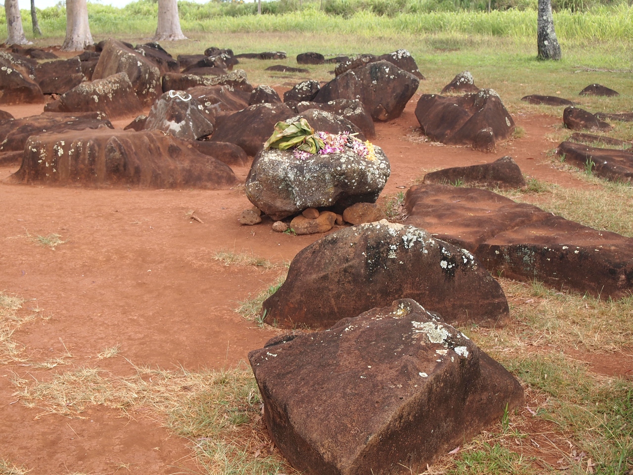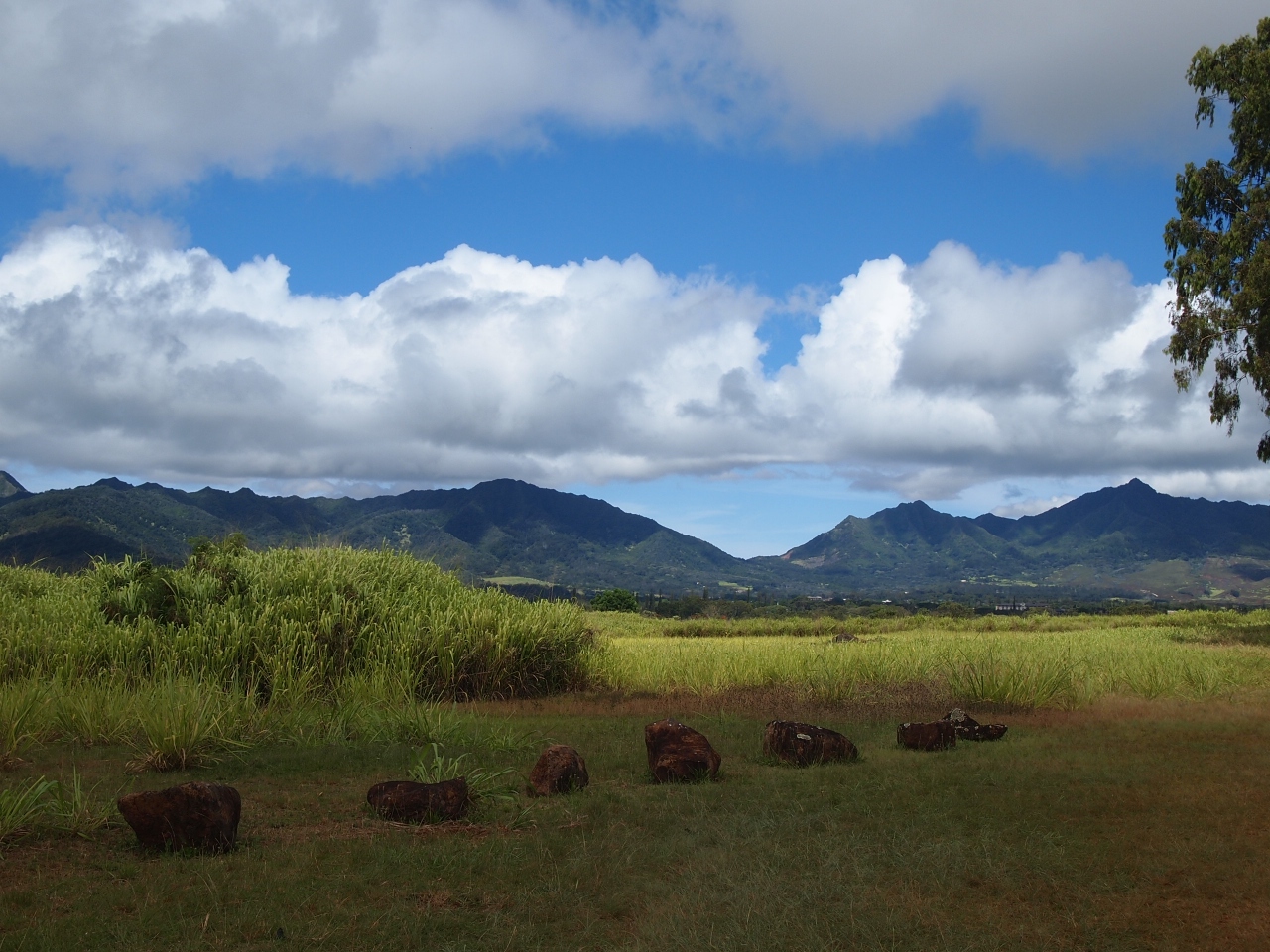 ノースショアへ向かう途中のワヒアワ地区にある、赤土の上にゴツゴツとした岩が広がるクカニロコ。通称バースストーンとも呼ばれ古代、王族の女性たちがその岩の上で出産したと言われています。クカニロコ バース・ストーンはとても見晴らしがいい場所です。