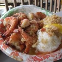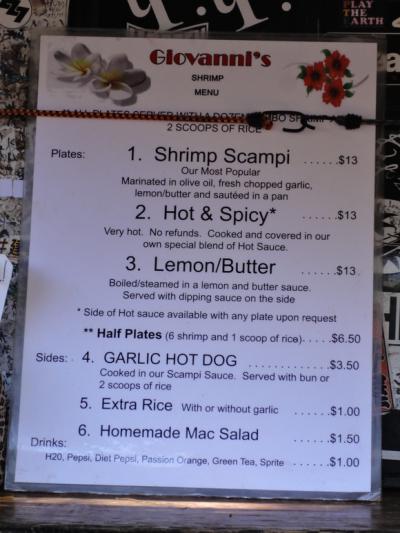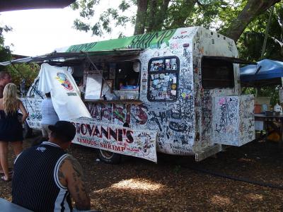 駐車場に数件のガーリックシュリンプのトラックがいます。