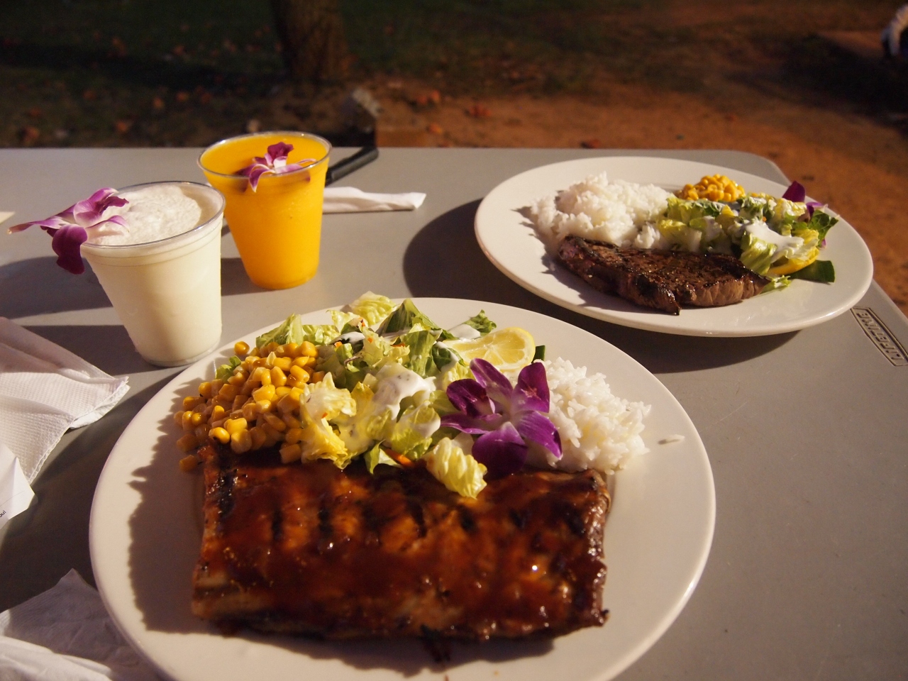 豪快にパクつきましょう。ガイドさんに水道がトラックにあると教えていただきました。