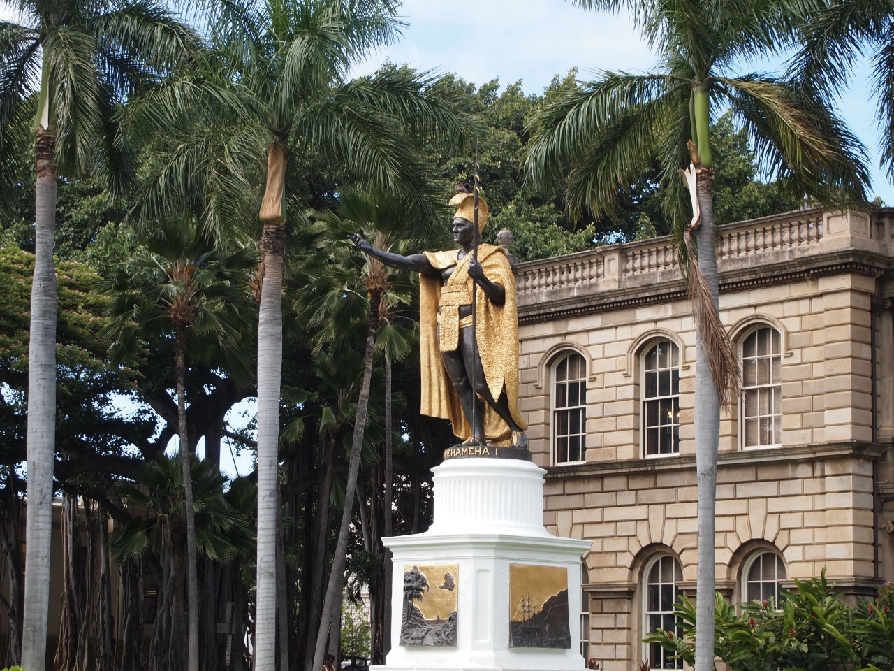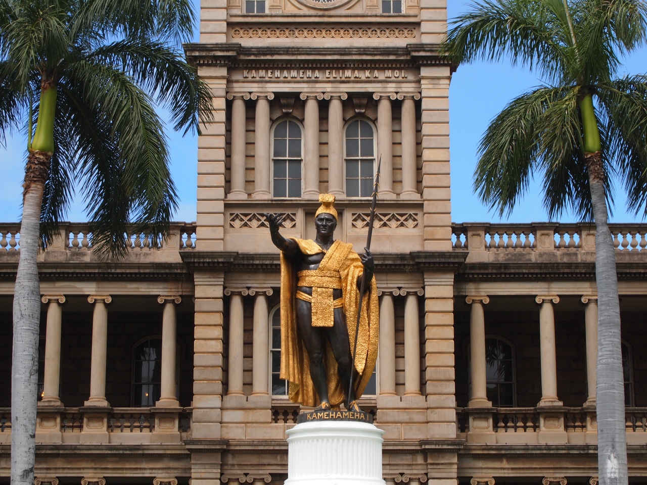 ダウンタウンにあるカメハメハ大王像です。これだけをわざわざ見に行くことはあまりないと思います。周りには観光名所がたくさんあるので楽しめると思います。