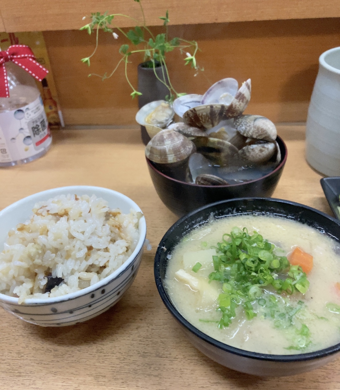 調べたら『かやくごはん+ハーフの豚汁&あさり吸物』がベストチョイス!ってことでしたが…はたして100点の満足感でした ☆- 旅行時期