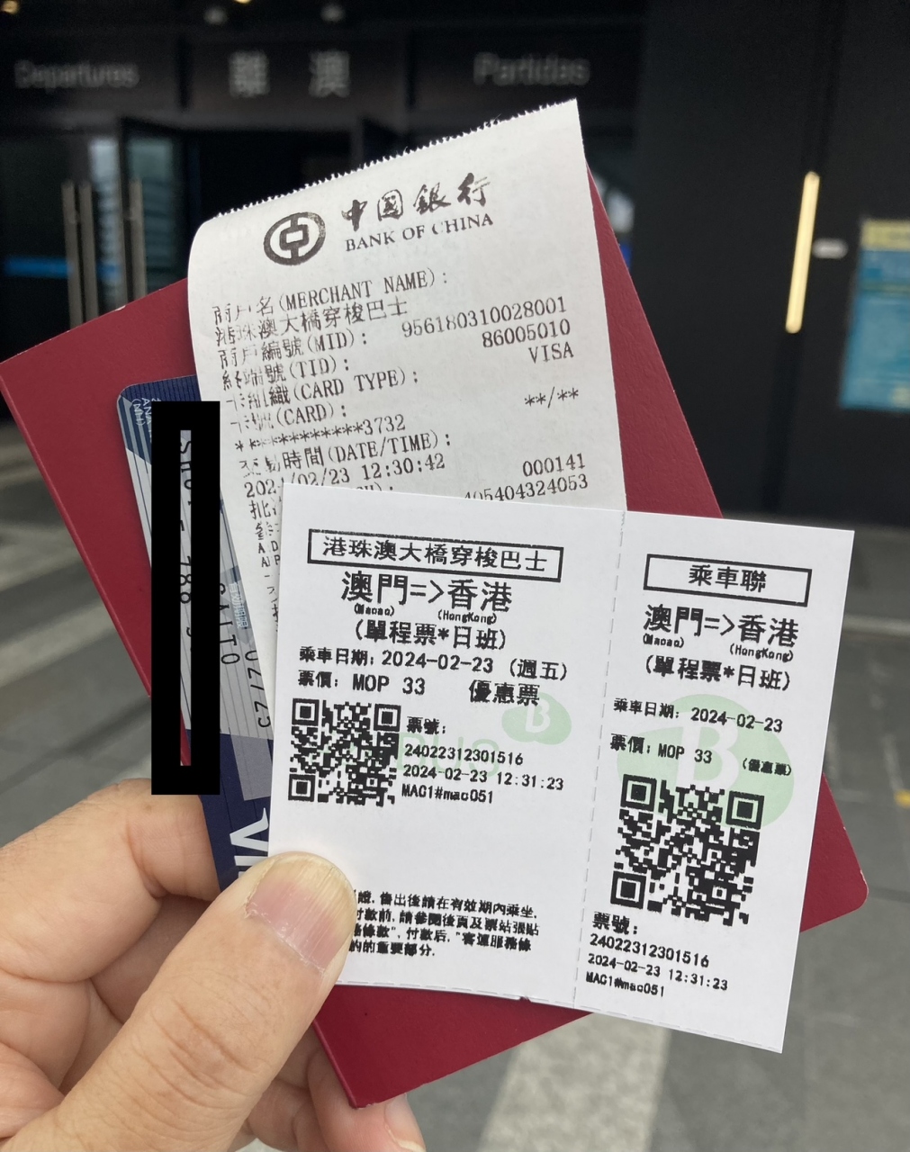 ⬜︎ マカオから「101X バス」でイミグレ & 出国~金巴士のチケットを購入(65以上なんで半額)して[港珠澳大橋]を通行