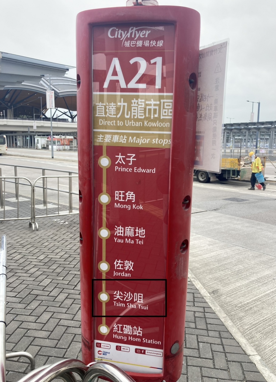 「港珠澳大橋香港口岸旅検大楼」で入国して「A21 バス」で九龍半島へ
