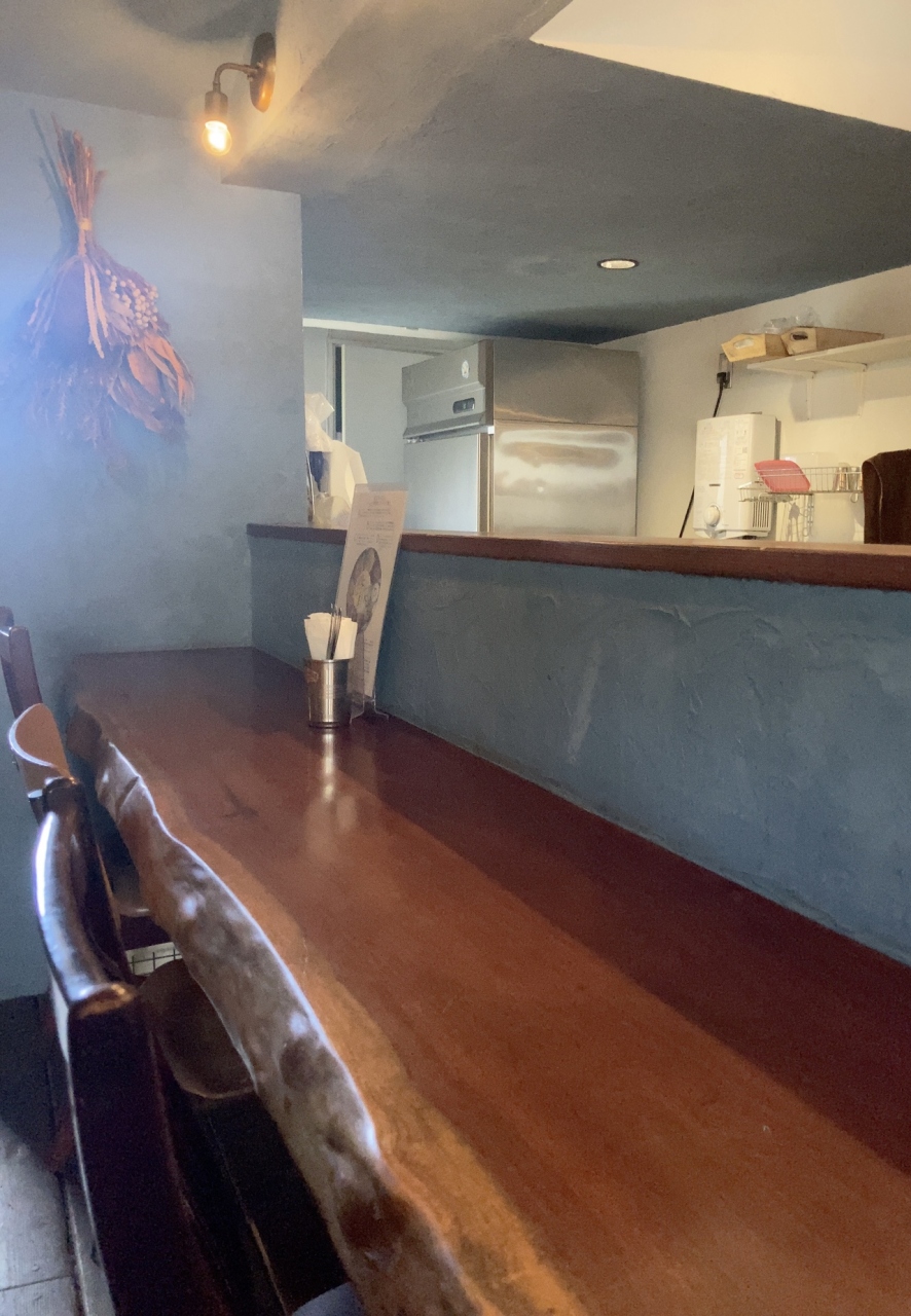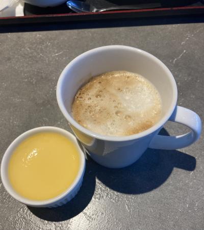 暖簾とネーミングがスタイリッシュな軽食ラウンジ~アタシのような「ただ飯狙い」には物足りない…が、お腹いっぱいだったので「抹茶ラテ」を美味しくいただきました!- 旅行時期