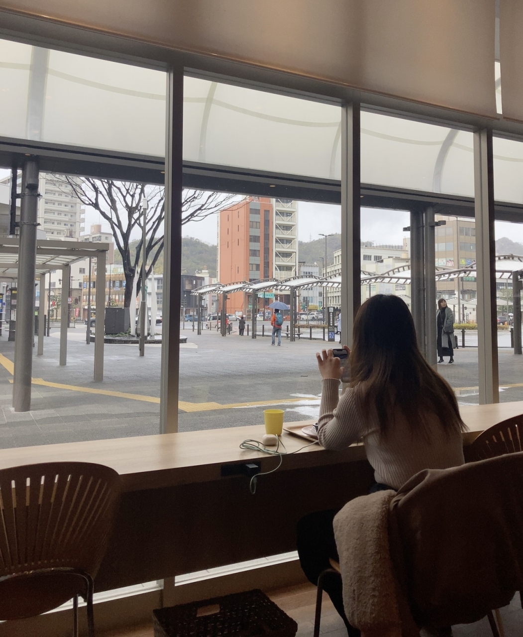岩国駅で気分転換がてら改札を出ると1Fに[ベジトリップ]を見つけて「ホットコーヒー」を注文!