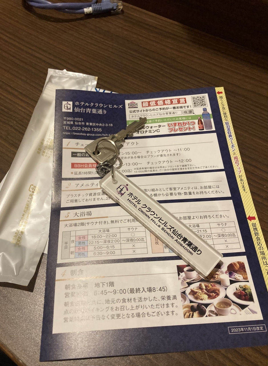新年【1/6】仙台駅近の土曜日1泊~「安い順」に検索して[クラウンヒルズ仙台青葉通り]¥5500(素泊り)
