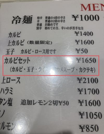 ・カルビセット ¥1650