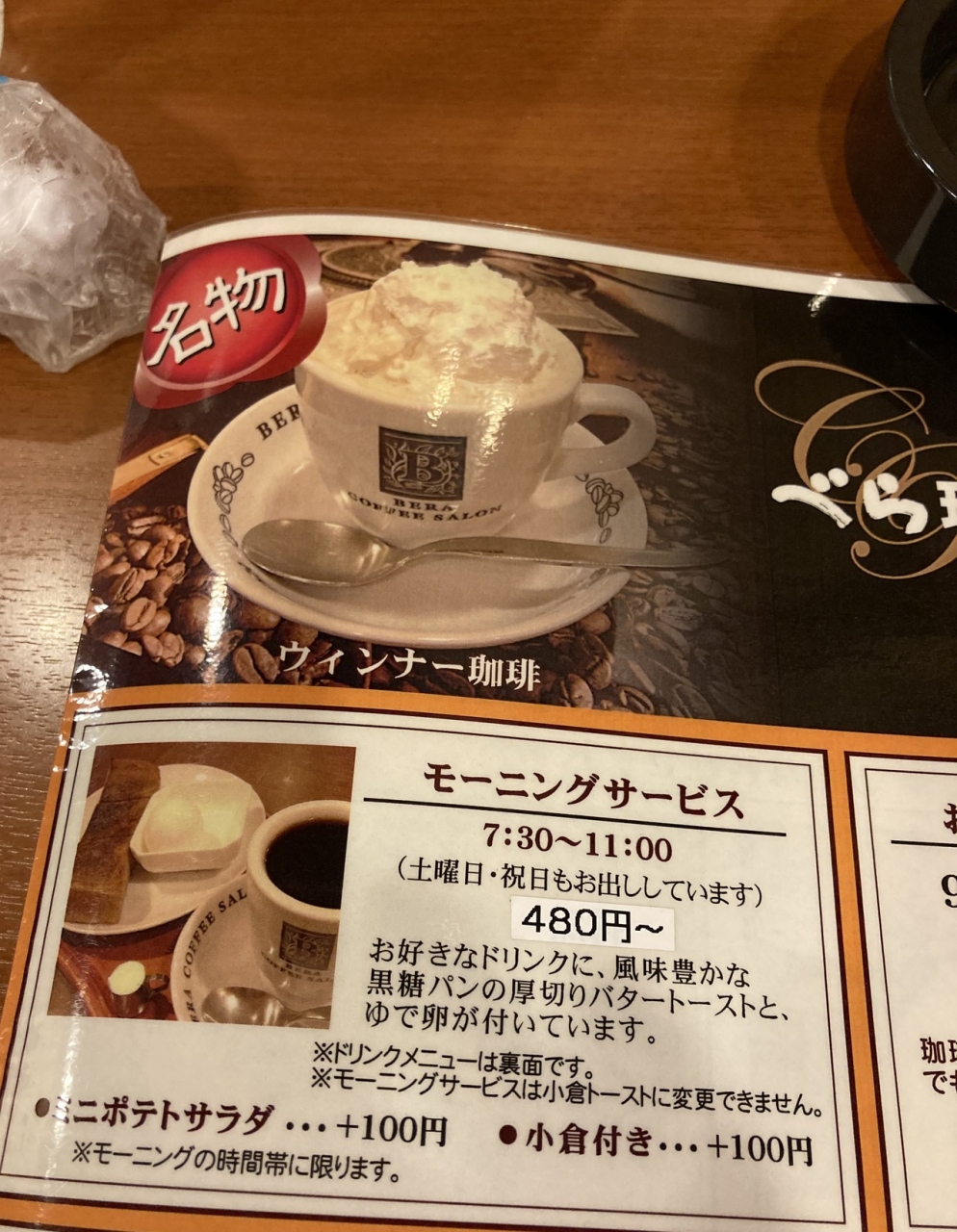 [べら珈琲]名物のウインナは「ホイップクリーム」が甘くて残念…黒糖トーストは黒糖さが弱くて残念…自分で茹で卵むくのが下手で残念…