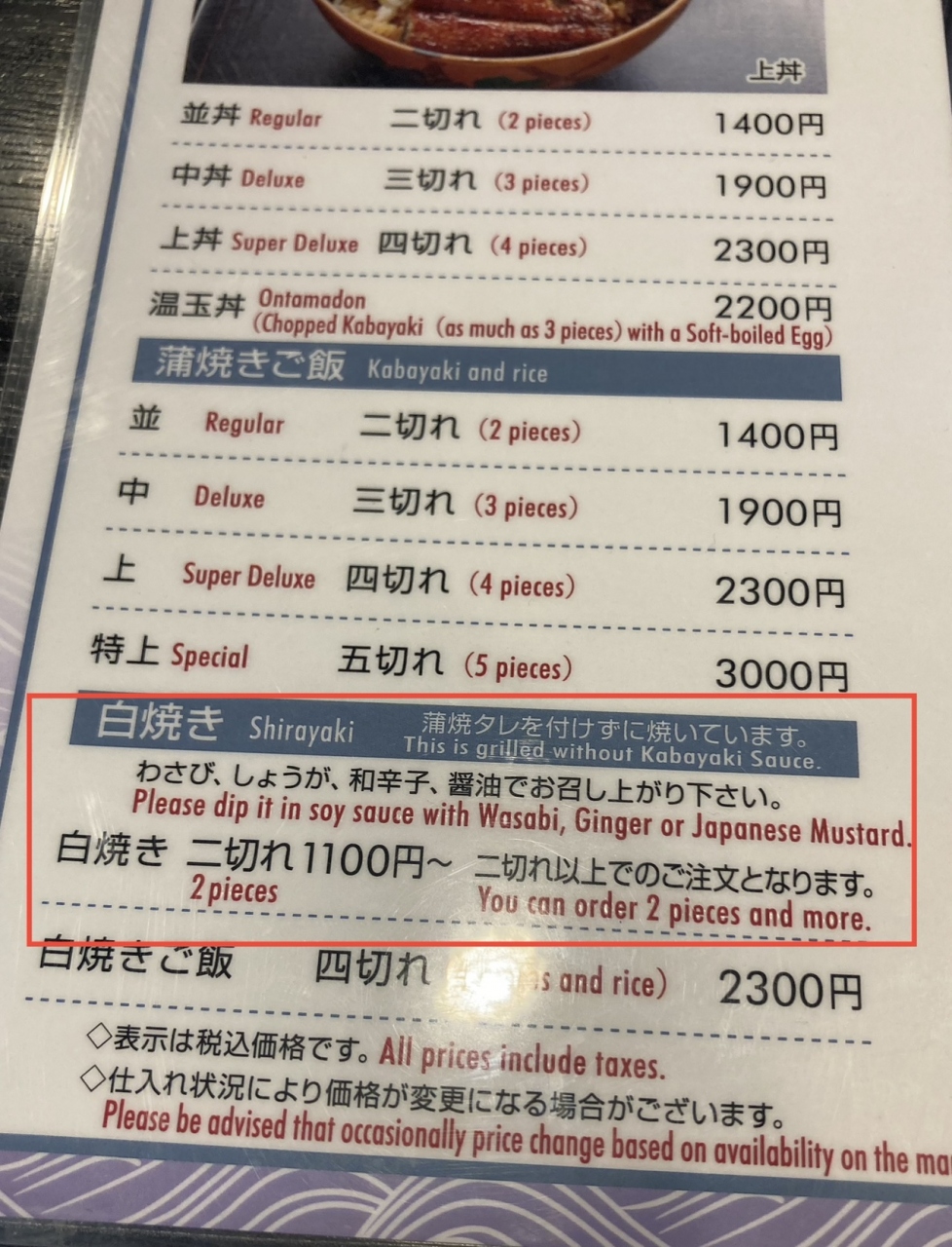 「鰻丼」と追加で「白焼き」を注文したが「5分」で両方一緒に出て来た!?(嘘だろ~~)- 旅行時期
