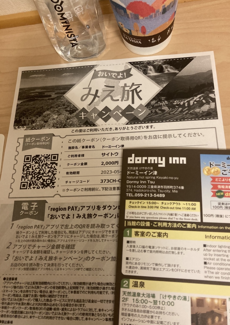 利用可との事で直接[ドーミーイン津]に電話予約しました。