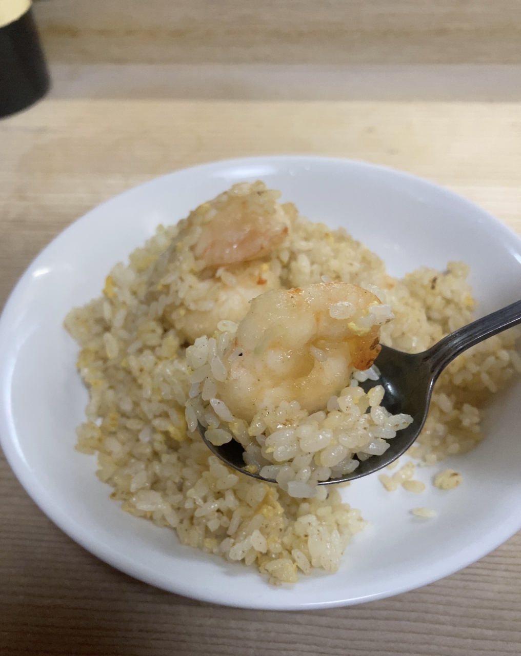 [12:20~]開店でカウンター1番奥に座り「エビ炒飯」を注文!(五目麺にしようかと思っていたが、後回しになるみたいで、皆んなと同じ炒飯に)