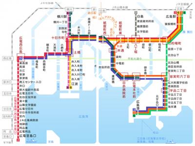 [市内線]~[宮島線][宮島口]~[広島港/宇品]~[広島駅]