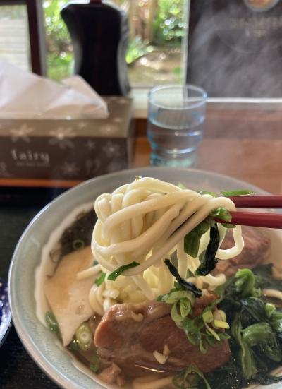 もともと、沖縄そばの「麺とスープのバランス」は好きじゃないのですが、そうは言え、コレだけ人気の「宮古そば」ですから(他に選択肢も浮かばず)期待せずにいただきました…
