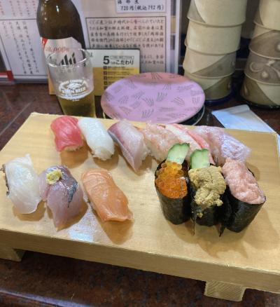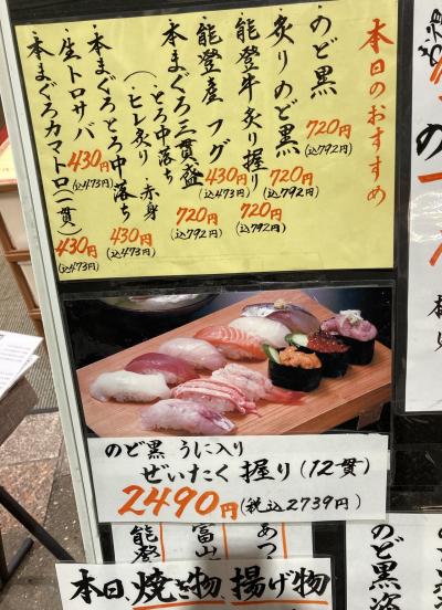 ホテルから近かった【近江町市場】ですが、午後7時は【市場寿し】くらいしか開いてなかった。。