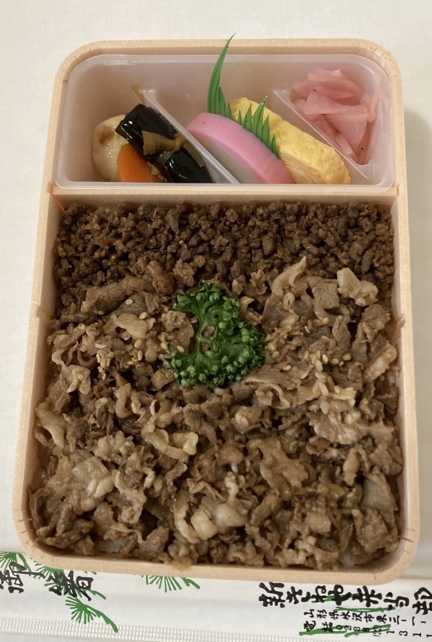 「駅前【新杵屋】本社工場直売店」って事で【牛肉どまん中】弁当を購入~裏から出して来たけど、手に温かかった @1350 ←不味かったら怒るゾ~!