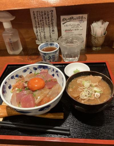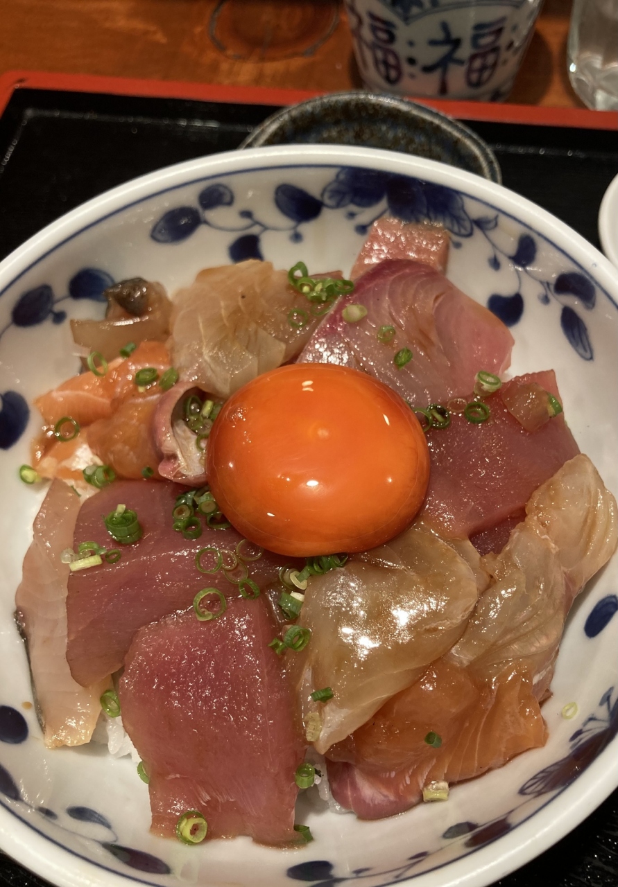 ☆[漬けの海鮮丼 @1600]を注文しましたが、まあまあ美味しかった(真ん中の卵黄も◎)