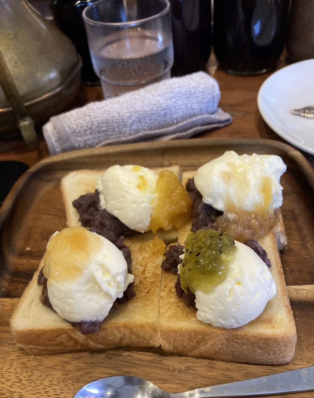- [小倉あん・ホイップクリーム・フルーツコンフィ]を乗せたトースト