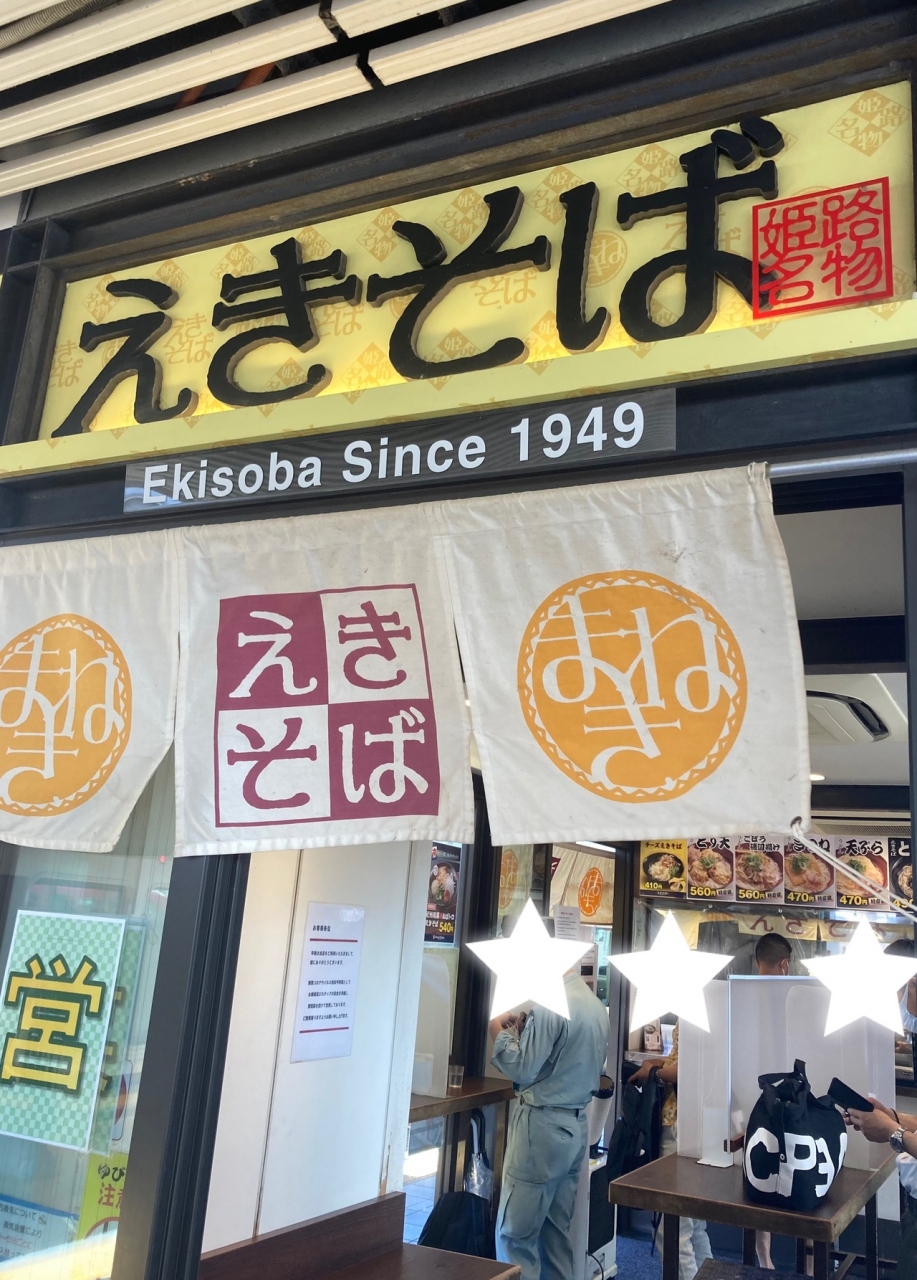 ⬜︎ 名古屋から姫路入りして(18きっぷ)大きくお昼を回ってしまいましたが、ホームの「まねき」で「天ぷらそば」を食べられました!