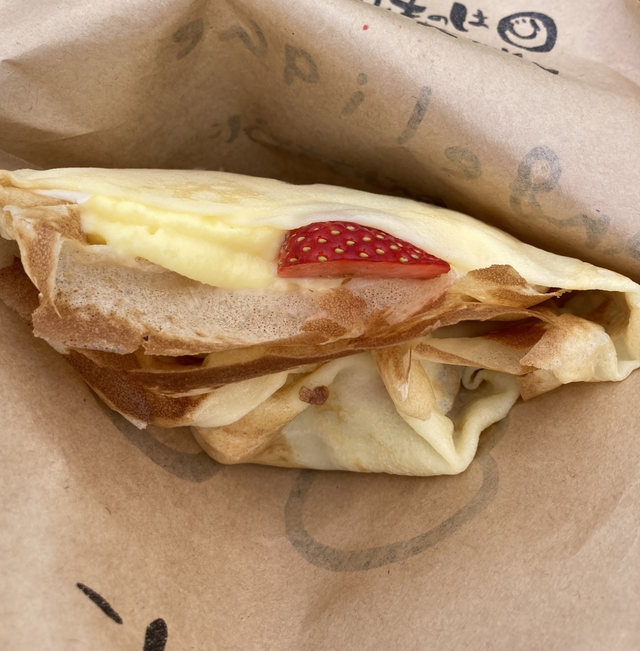 「苺のミルフィーユ クレープ」@750~ボリューミーで満足感あります!が、苺ショボい、甘さ抑え過ぎ、後半バラバラ事件、