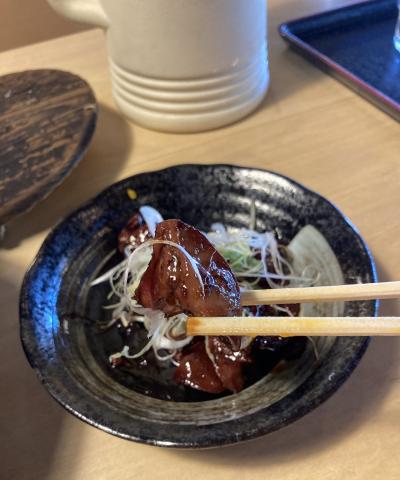 「鳥もつ煮」は甘塩っぱく、見た目通りの味(ほうとうのアクセント的)。