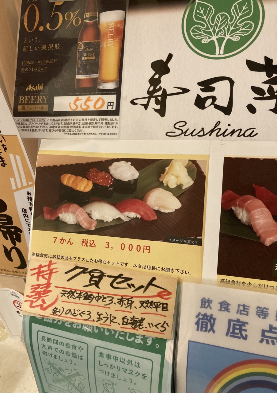 その中で営業してる【寿司菜】で「9貫 玉子焼き・お椀 セット」¥2200「雲丹(トッピング)」¥800 を注文。