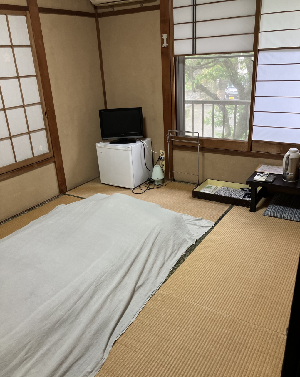 刺身はその日の「当たり外れ」があるかも知れません…お部屋は安定の古さ…目の前は相模湾…後ろは樹木豊かな自然公園…