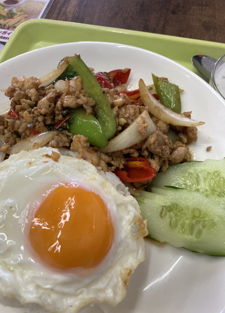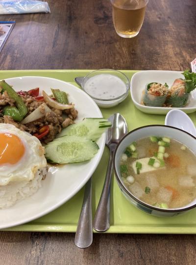 ☆ ランチは ¥850で食べられるので「ガパオライス」を注文~日本ナイズされいてるものの、ドリンク・デザートも付いてボリューミー、ほんの少しタイを思い起こしました~