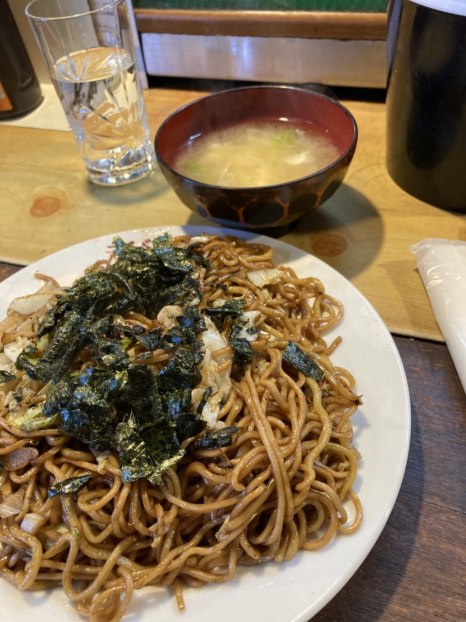 ☆「ラードぎとぎと」のあの焼きそばを懐かしんで訪れてみたが、ものすごく汚い店内に驚いてしまいました(汗)。。先客がいて、未だ片付いて無いカウンターで焼きそば(みそ汁付)¥450を食べたけど…記憶の味とは違っていた…