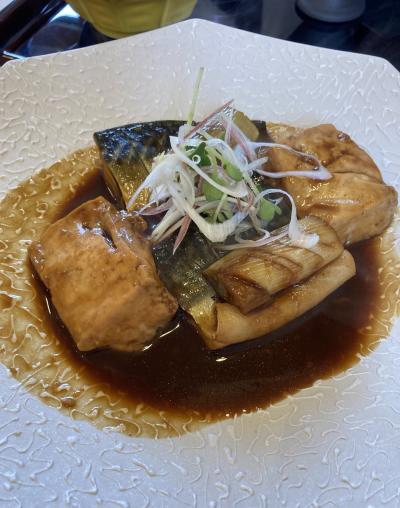 「秋サバの味噌煮」を食べました、田舎っぽく無く「サラッと」煮付けてあってフレッシュな味わい!嬉しいデザート付き ♡