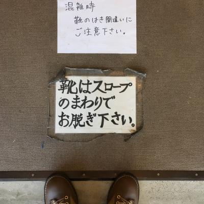 入口狭くて奥に長い駐車スペースは既にいっぱい~名前記入で順番待ち。