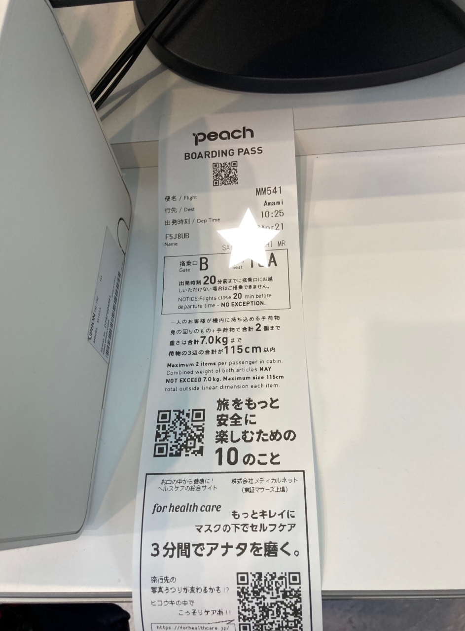 ~ピーチ(成田→奄美)往路で利用~