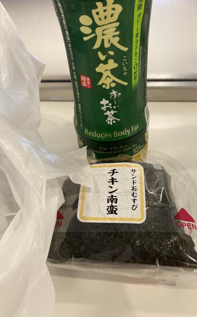朝飯として「お茶ペット・オニギリ」を購入(もちろんANAカード)選択肢は少ないかなぁ?