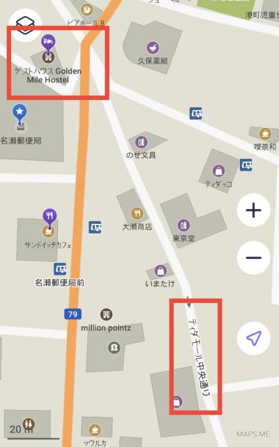 - [空港↔︎ホステル]の中間地点