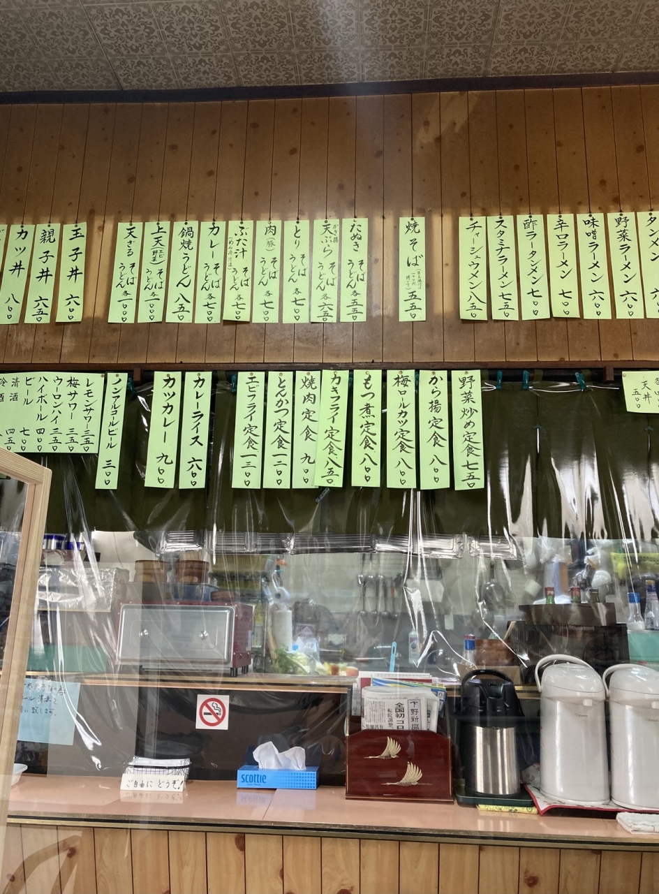 ⬜︎ イメージしていたより全然綺麗な店で、12時に開店なんだけど「注文弁当」を取りに来る人もいたり、女将さんも感じ良く、料理が少し遅いけど丁寧さが際立つ。。(それにしても店内は、ビニールシートだらけ with COVID)