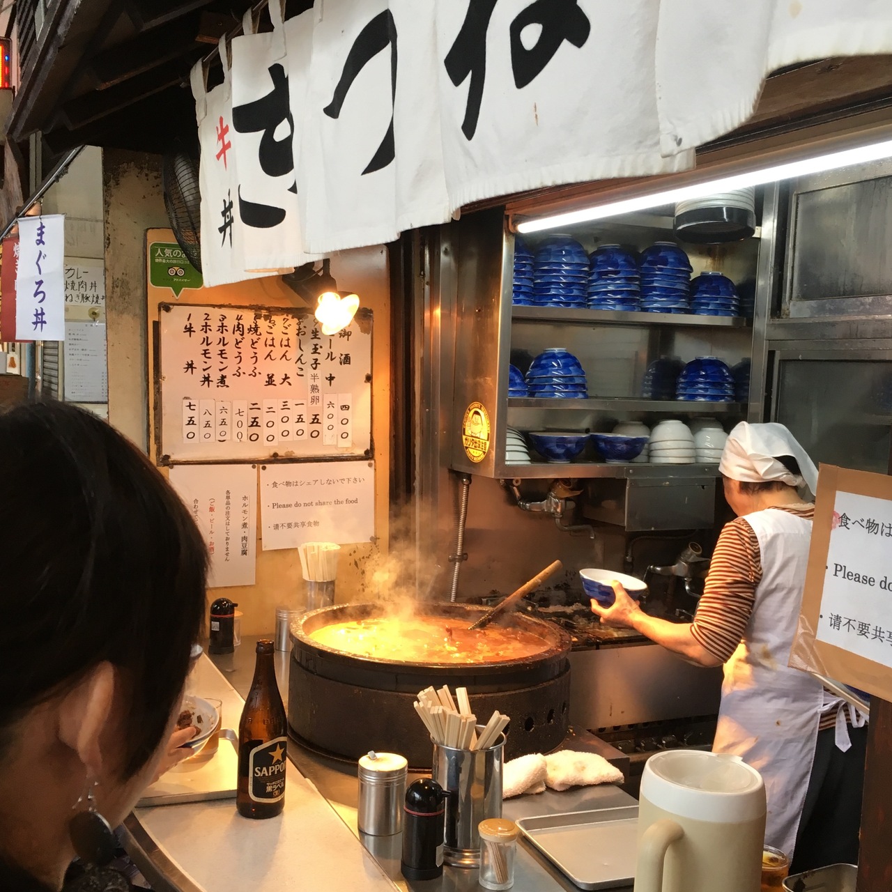(夜帰国便)羽田泊まりで朝帰り~時間も有りましたので、築地【きつねや】で朝飯、ホルモン丼を食べた!