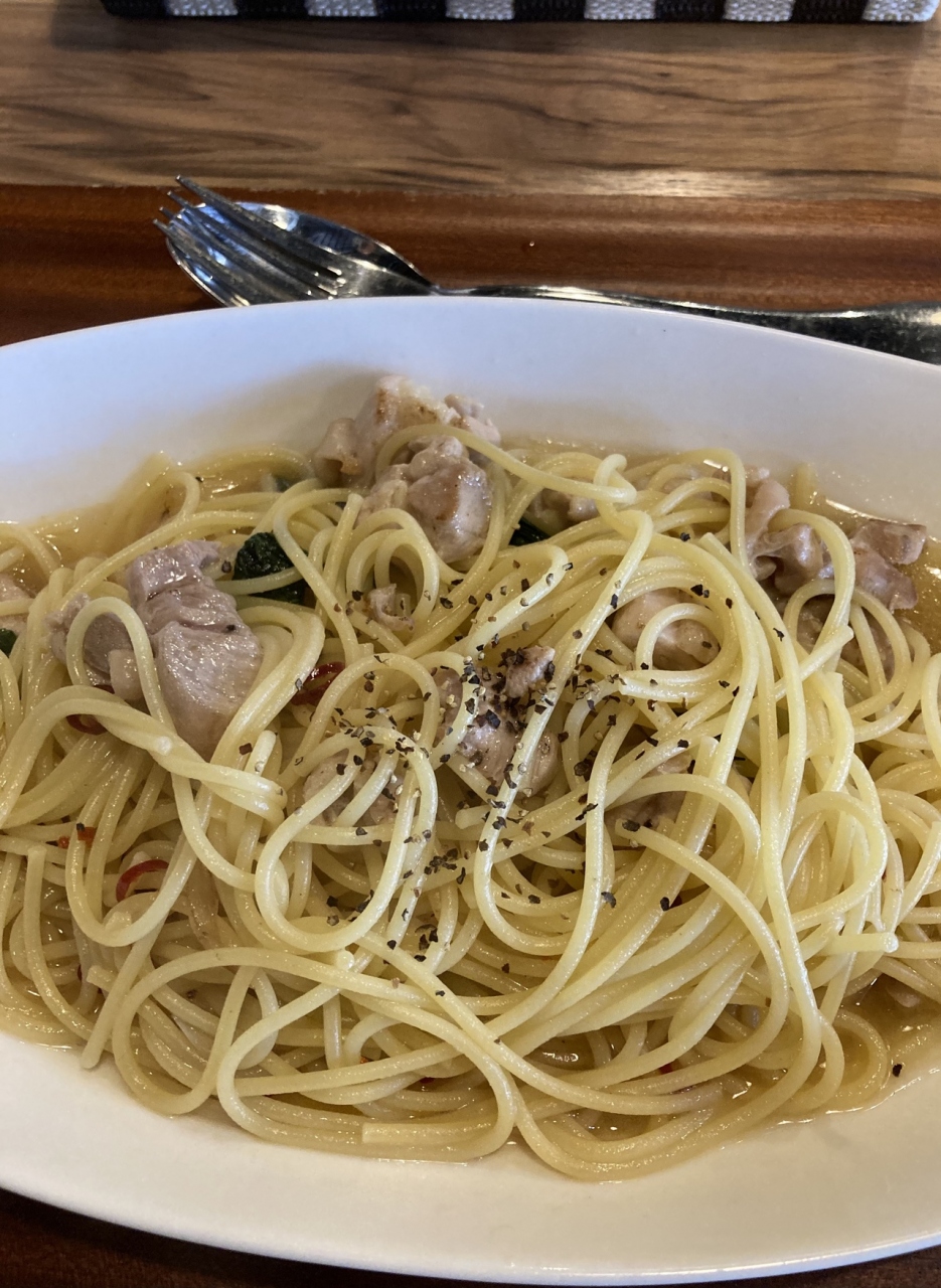 長考して選んだ「地鶏のペペロンチーノ」は大失敗だった・・- 旅行時期