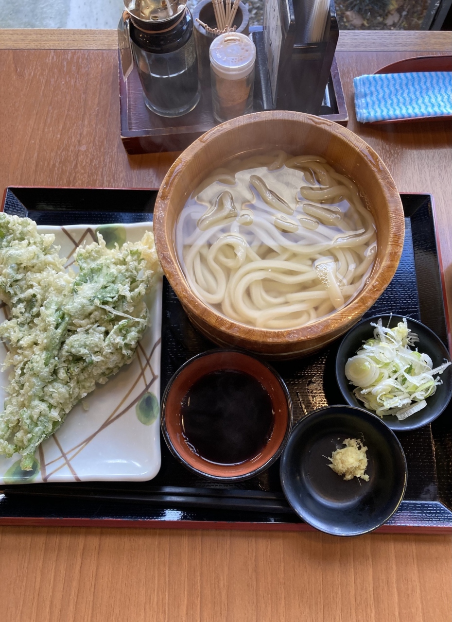 「釜揚げうどん」と「春菊天」にしました!お味は◯亀より落ちますね~(◯亀の良さを再認識する結果になってしまいました…)