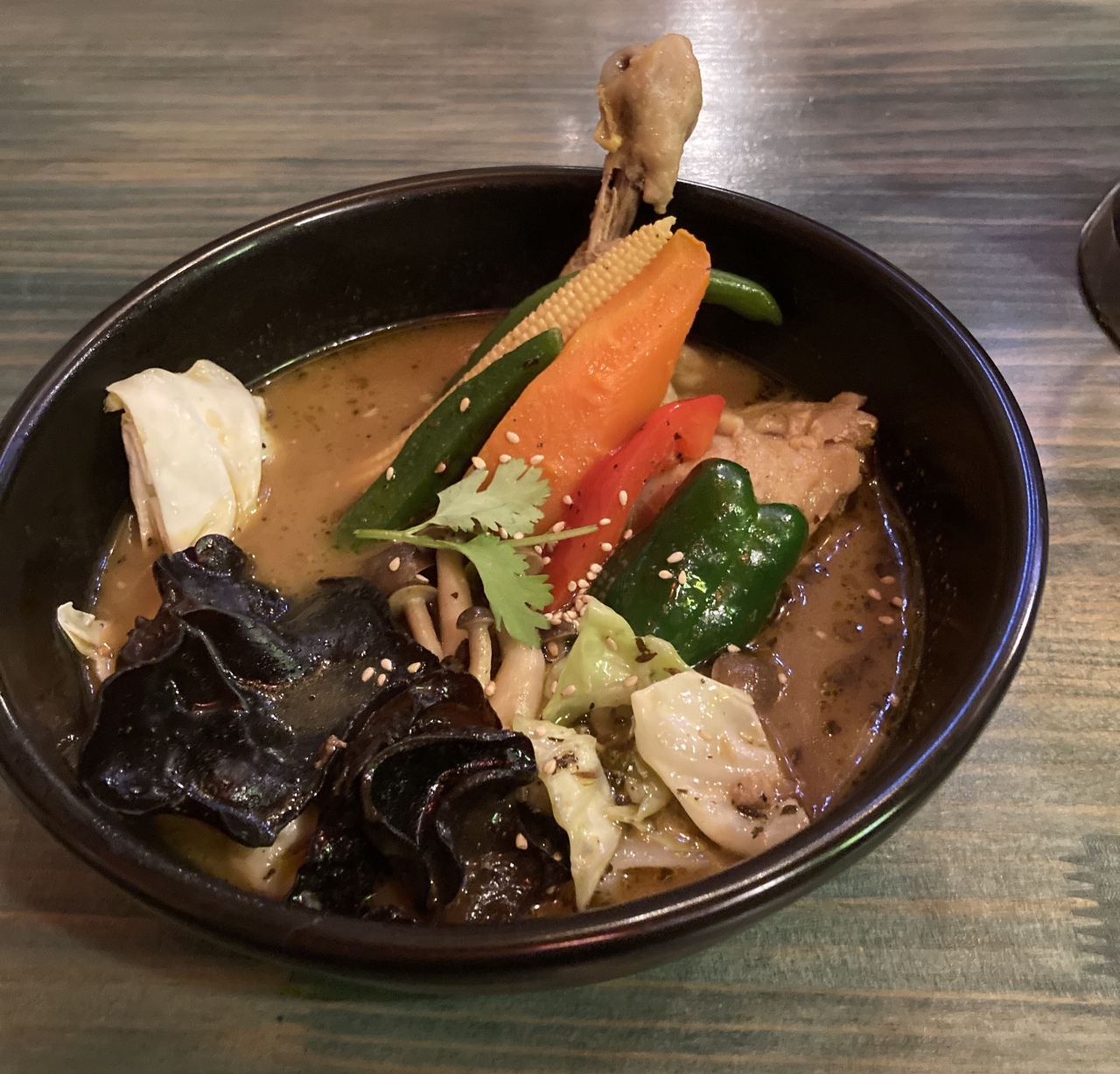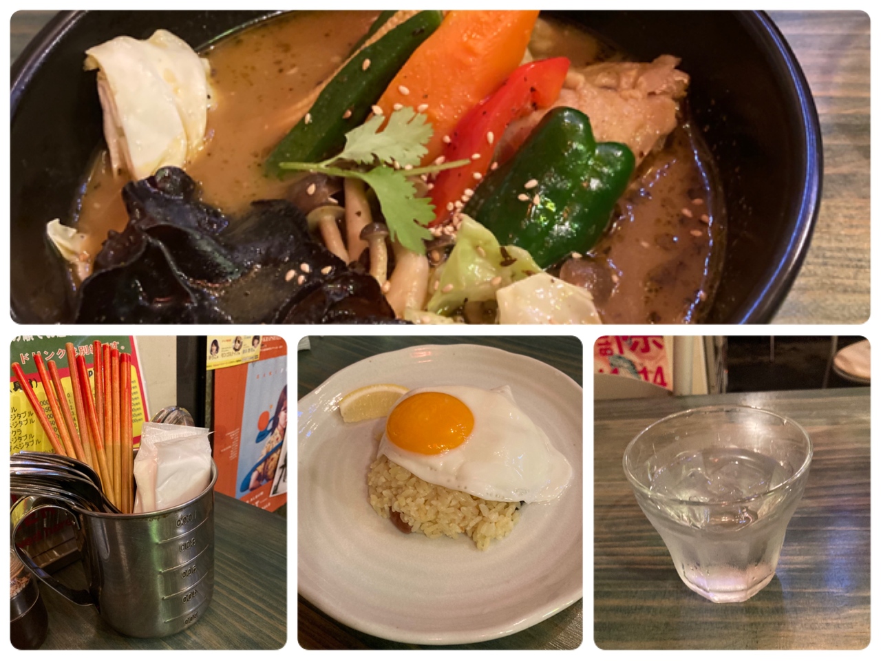 狸小路7丁目の集合スペースにある個性的店舗です。2度目の訪店で食べることが出来ましたが、アジアンエスニックな印象で、野菜たっぷりで温サラダ的でもありました!